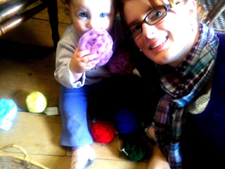 I had the job of watching my sweet darling Niece as her Mommy shopped around. There isn't much a baby can touch in an Antique store so we played with a basket of scrubbies that were for sale.